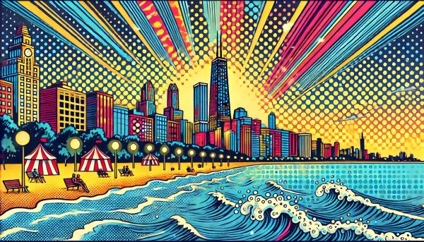 Vibrant Pop Art of Chicago Skyline from North Avenue Beach