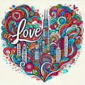Whimsical Heart-Shaped Chicago Skyline Celebrating Love and City