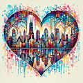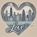 Colorful Heart-Shaped Artistic Interpretation of Chicago Skyline