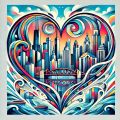 Heart-Encased Chicago Skyline in Bold Expressionist Pastel Strokes