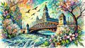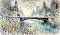 Dreamlike Interpretation of Jackson Boulevard Bridge in Watercolors