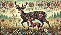 Dreamlike Embroidery of White-tailed Deer and Cub in Illinois Countryside
