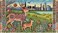 Majestic Deer Amid Vibrant Chicago Skyline in Folk Art Style