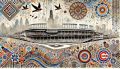 Vibrant Fusion of Folk Art and Calligraphy in Chicago Skyline