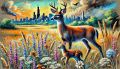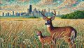 Majestic White-tailed Deer Against Chicago Skyline in Neo-Expressionist Style