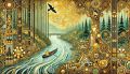 Gustav Klimt-Inspired Scenery of a Serene River Journey in Chicago
