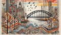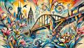 Dreamlike Interpretation of Kinzie Street Bridge Amidst Artistic Chaos