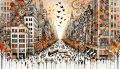 Klimt-Inspired Vision of Chicago's Magnificent Mile in Abstract Ink