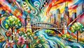 Vibrant Cubist-Inspired Visions of Chicago's DuSable Bridge at Springtime