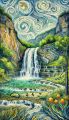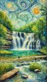 Enchanting Swirls Above Tranquil Waterfalls: A Vivid Artistic Expression
