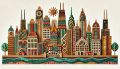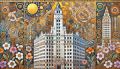 Chicago Skyline Embellished with Folk Art Florals and Patterns