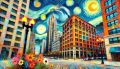 Starry Night Over Carson, Pirie, Scott Building in Van Gogh Style