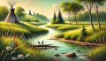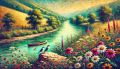 Enchanted River Journey: A Klimt-Inspired Landscape of Sangamon River