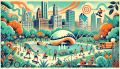 Vibrant Illustration of Millennium Park, a Hub for Urban Recreation