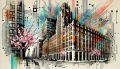 Eclectic Fusion of Abstract Art Styles Capturing Chicago's Wrigley Building
