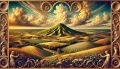 Baroque-Inspired Artistic Rendition of Charles Mound Amidst Illinois Farmland