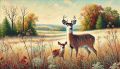 Rustic Charm: White-tailed Deer in Vintage Illinois Countryside Art