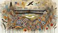 Abstract Artistic Fusion of Navy Pier with Native American Motifs