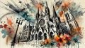 Dynamic Ink Wash Art of Holy Name Cathedral, Chicago