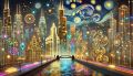 Surreal Interpretation of Millennium Park, Chicago with Vibrant Abstract Flair