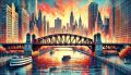 Sunset Over Chicago: A Vivid Artistic Depiction of Iconic City Bridges