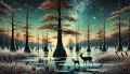 Enchanted Twilight: Deer and Starlit Sky in Cache River, Illinois
