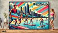 Vibrant Illustration of Teenagers Surfing on Lake Michigan, Chicago