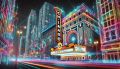 Neon Glow and Wireframe Art Illuminate Chicago Theatre at Night
