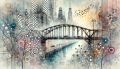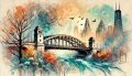 Abstract Ink Wash Featuring Chicago River and Iconic Bridges