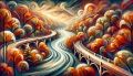 Surreal Autumn Whirl: Cubist-Inspired Dreamscape of Kankakee River