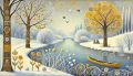 Golden Whispers of Winter: A Gustav Klimt-Inspired River Landscape