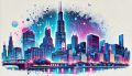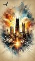 Enigmatic Dawn Over Chicago’s Skyline: A Watercolor Fantasy