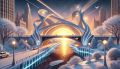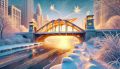 Magical Winter Sunrise over a Fantastically Reimagined Chicago Bridge