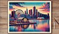 Vibrant Reflections of Chicago Skyline in Impressionistic Style