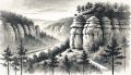 Monochrome Watercolor Art of Shawnee National Forest's Majestic Peaks