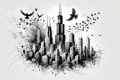 Ethereal Birds Over Chicago: An Abstract Ink Interpretation of Urban Skyline