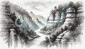 Evocative Watercolor Interpretation of Starved Rock State Park, Illinois