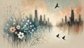 Ethereal Chicago Skyline - Impressionist Art with Birds and Blossoms