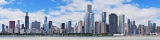 Expansive View of Chicago's Skyline Over Lake Michigan under Cloudy Skies